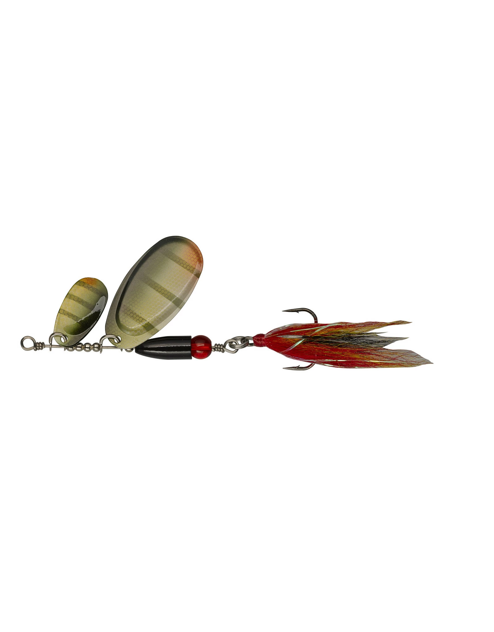 Tandem versie van de BUCK PIKE met 2 lepels van het type “vingernagel”. Zorgt voor zeer complexe trillingen en provoceert aanbeten van snoeken die aan standaardaas geen interesse meer hebben. De bucktail teaser aan de dreg bevat tinsel flash draden en dat is een garantie dat de BUCK PIKE niet over het hoofd wordt gezien. Met een doorzichtig rood oog als doel voor de aanvaller. 1,2mm rvs draad.
