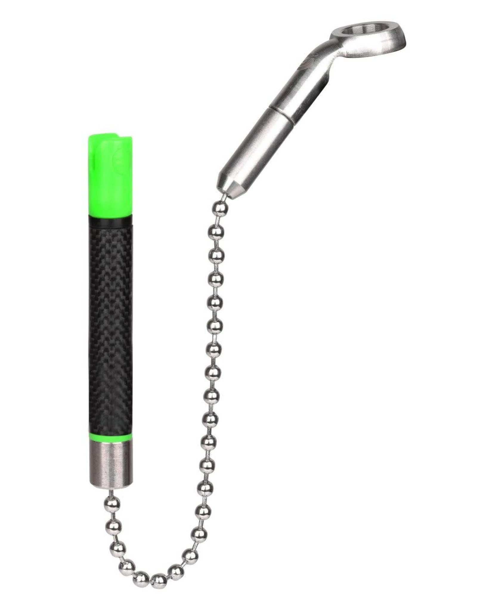 Stainless steel ball chain hanger met extra gewichtje, carbon body en magnetische lijnclip.