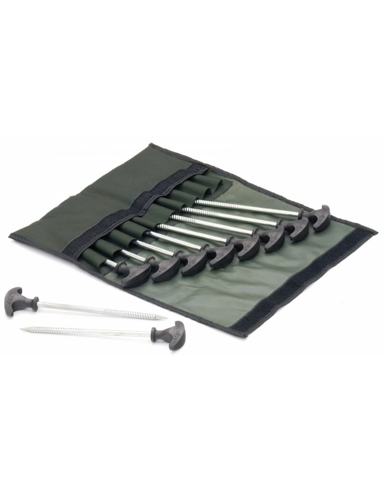 Tien grondharingen (de grondharingen bivies starbaits) met een lengte van 20cm. Geleverd in een opbergtas die u het vervoer vergemakkelijkt.